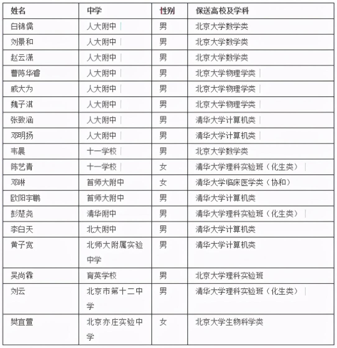 由于清华大学、北京大学代表着我国高校中最顶尖的水平,因此,清北保送生名单的公示,成为人们极为关注的焦点。