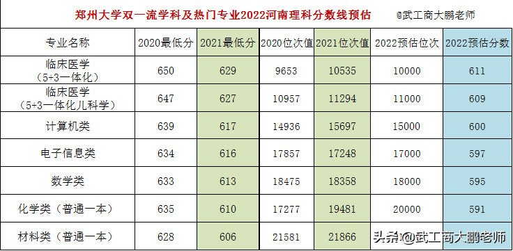 双一流学科及郑大优势学科理科投档线预测郑大优势学科2022年河南理科预估分数