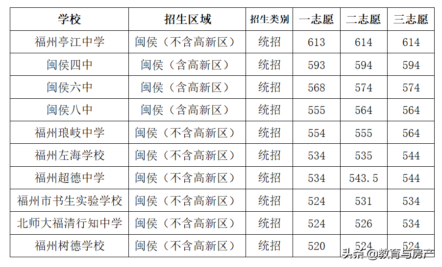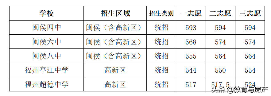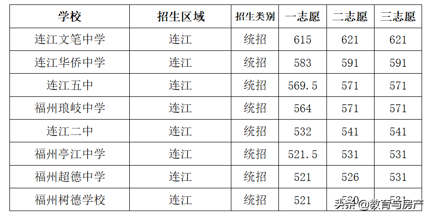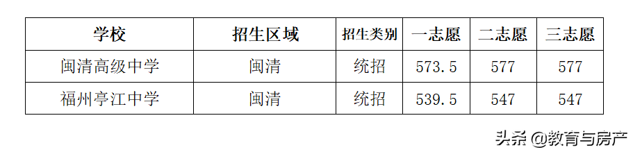 闽清县没有私立校来兜底,只有亭江中学来相挺,但亭江中学在闽清只收5人,于是最低分来到539.5分。
