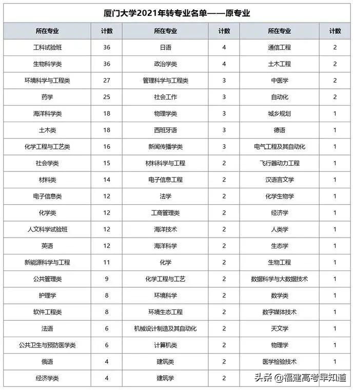 早前,厦门大学教务处公布了2021年转专业名单,我们来看下厦大今年的转专业情况。