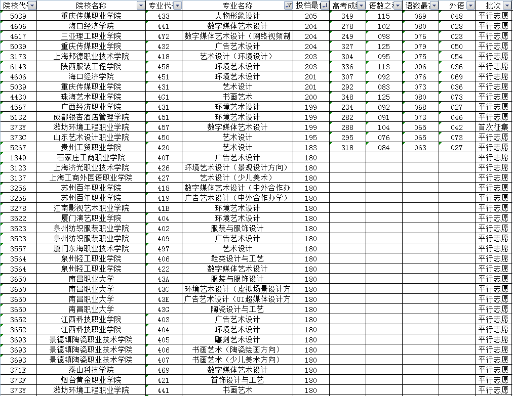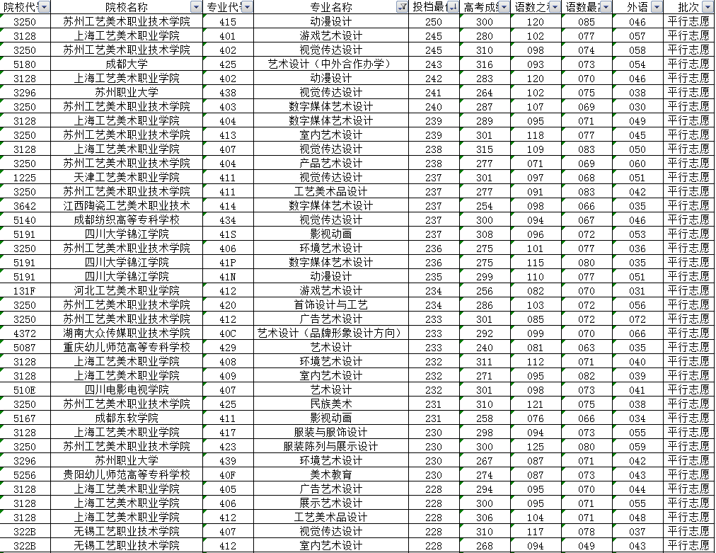 重庆美术类专科批次是按照美术生的联考专业成绩排序投档录取的。在2022年投档录取中,最高分是苏州工艺美术职业技术学院的250分,大家可以发现,联考成绩达到250分及以上的部分考生,也只能在专科批次获得录取机会。