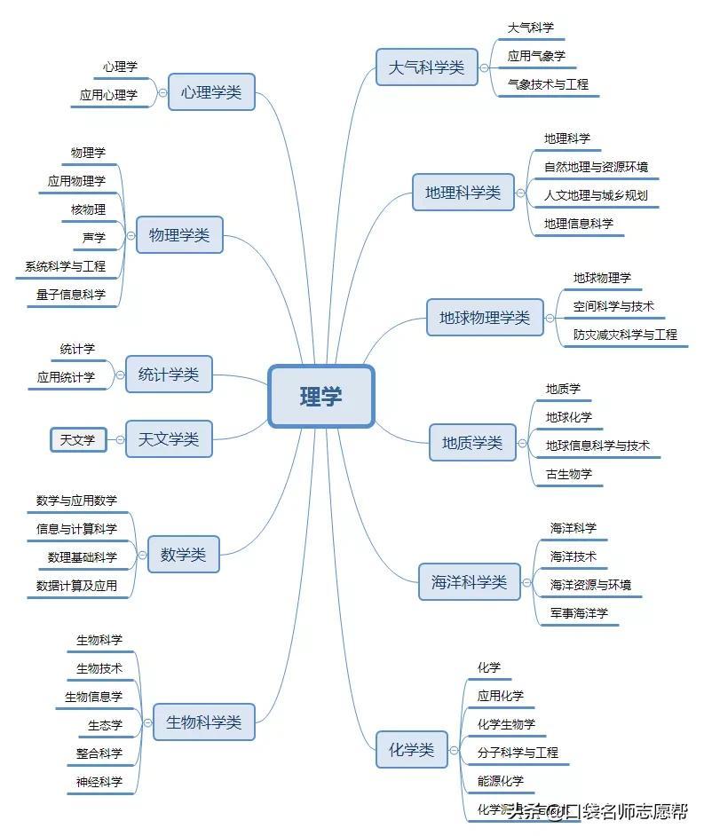理学门类下包含了12个专业类,数量还是比较多的,其中像数学、物理、化学都是基础学科,还有像跟地理相关的地理科学类、生物相关的生物科学类等等,都是大家会根据自己的学科喜好进行选择的专业方向。其中值得大家特别注意的是,心理学以及统计学类都是属于理学门类的,这点不要记混。