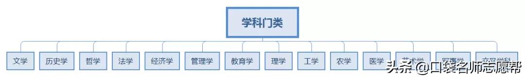 而如果加上军事学及去年年底新公布的交叉学科门类,目前我国总共有14个学科门类:哲学、经济学、法学、教育学、文学、历史学、理学、工学、农学、医学、管理学、艺术学、军事学、交叉学科。然后再由这14个学科门类中划分出了90多个专业类,专业类下又细分成了700多个具体专业。