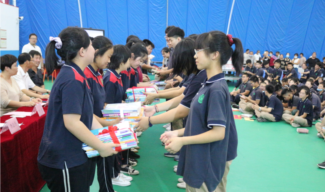 学长学姐将精心整理的笔记赠送给学弟学妹,每个字符里都包含着学习的过程和求知的痕迹。每位学子为母校捐赠三本课外读物,并捐赠图书柜一个,希望这些书能给学弟学妹们带来帮助,更希望把求知若渴、自律的学风也传承下去。