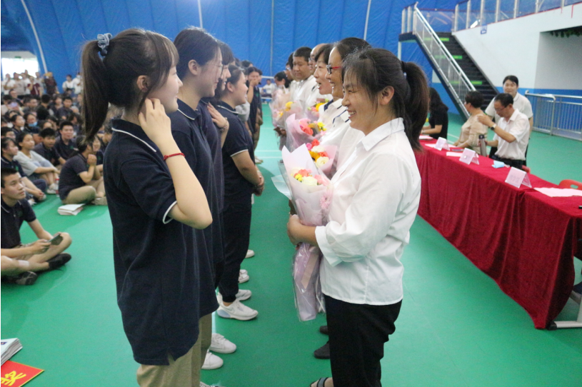 学生为恩师献花