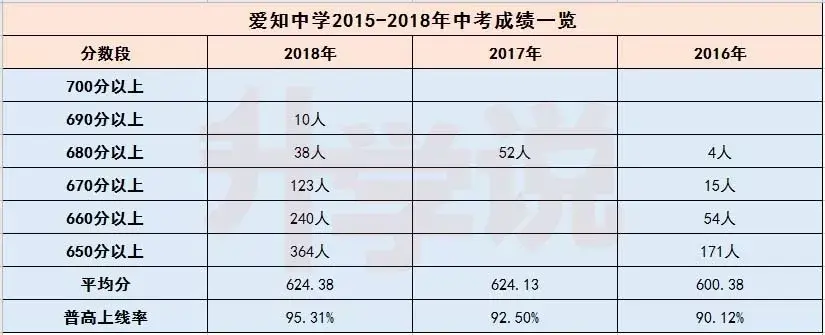 爱知中学2015-2018年中考成绩一览: