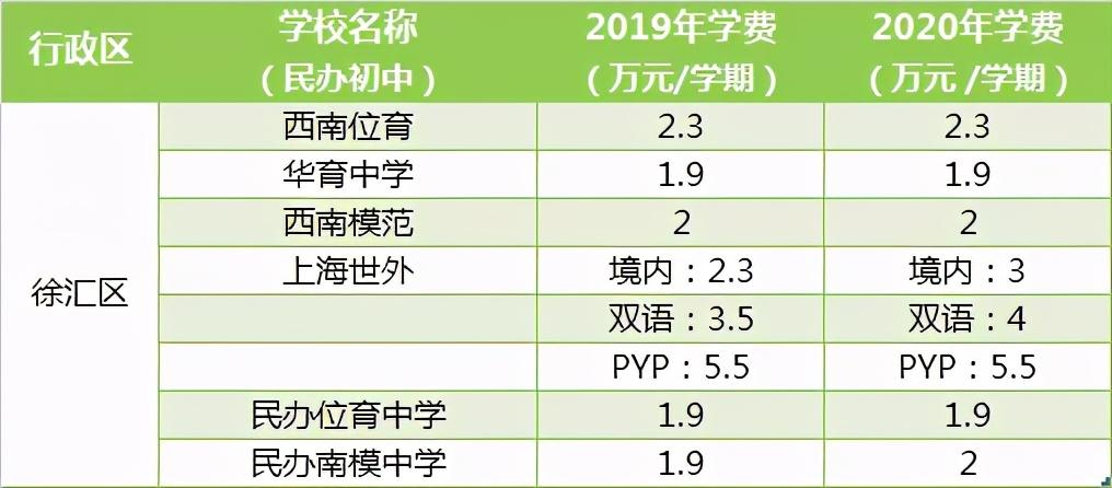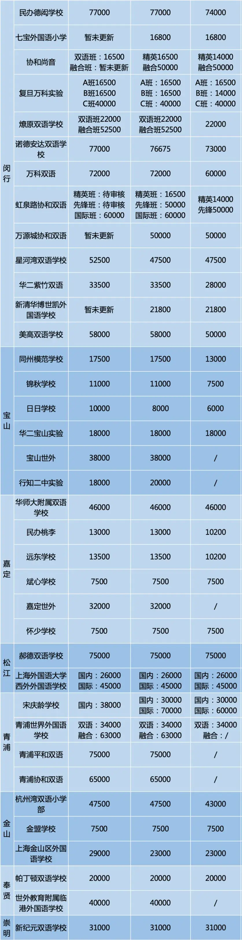 青浦、奉贤、崇明这三区的学费今年都没有变动。