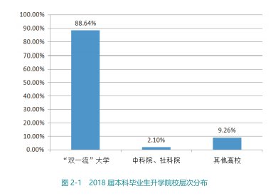 2018年,共有4220名本科毕业生国内升学或出国(境)深造,占本科毕业生总数的60.16%。其中国内升学2809人,占本科毕业生总数的40.04%;出国(境)深造1411人,占本科毕业生总数的20.11%。
