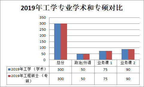 从上图中可以看出中南大学2019年的工学学术和专业硕士的招生分数一样。