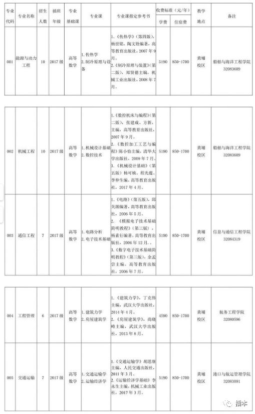 插本招收专业偏向于交通工程方面