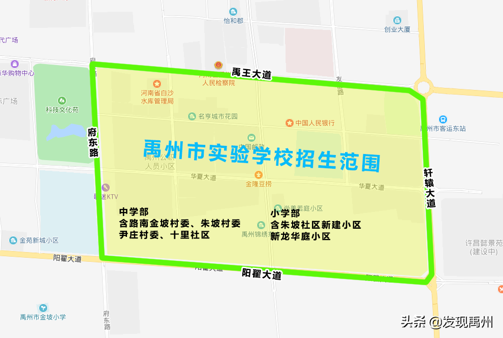 招生区域一:药城路以东、柏山路以西、禹王大道以北、颍河以南。