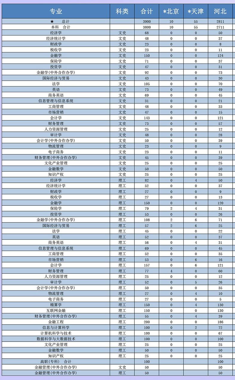 河北金融学院今年计划招生3900人,值得注意的是河北金融学院今年仍然是本科和专科两个批次招生。其中本科招生3800人,面向河北省招生2711人。专科招生100人,份额全部面向河北省。