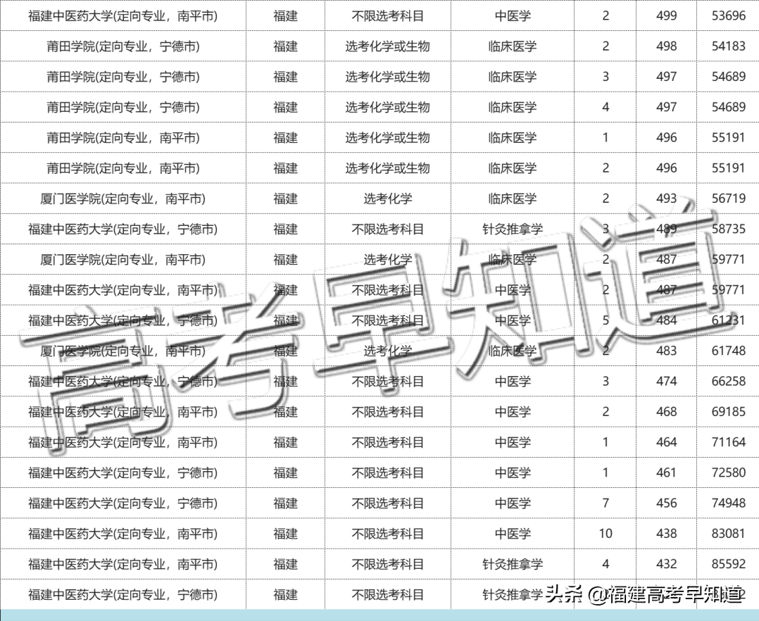 5.定向招生:福建高校医学定向招生,毕业后定向工作,医学类定向专业毕业后有的可以定向去县医院工作;