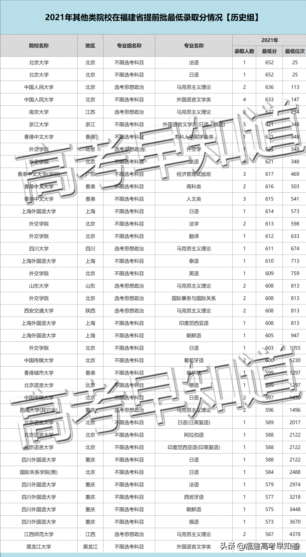 6.其他院校或专业:如小语种专业、试验班、外交学院、国际关系学院、香港城市大学、香港中文大学等省教育考试院公布的在提前批次招生的其他院校或专业。