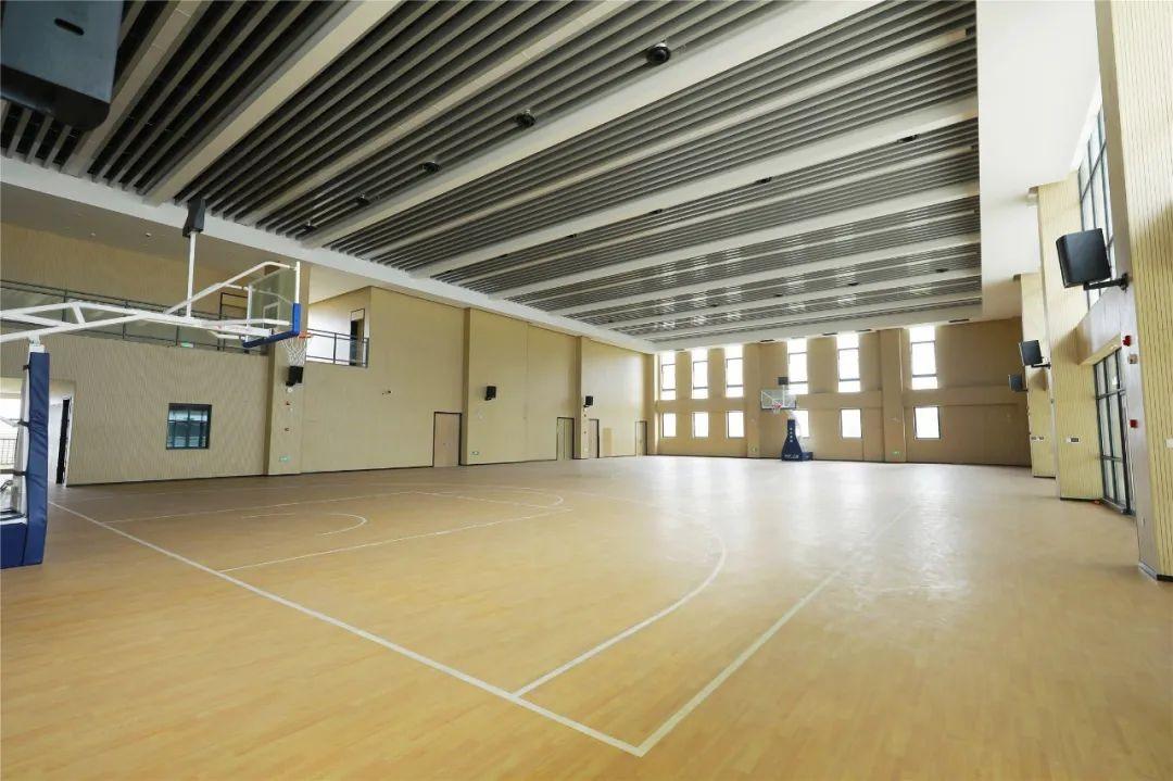 室内体育馆里,可以进行篮球、羽毛球、排球运动。