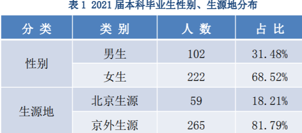 学院2021 届本科毕业生共 324 人(含华侨港澳台学生),其中男生 102 人,女生 222 人,总体男女比例约为 1:2.18。
