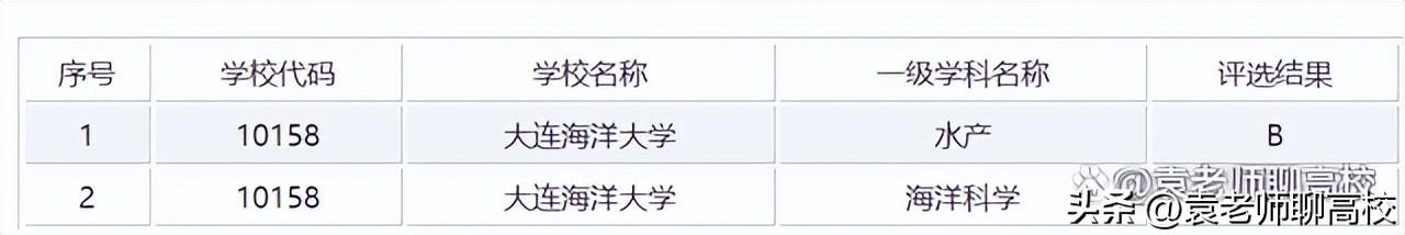 在第四轮学科评估中,大连海洋大学有两个学科上榜,其中水产被评为B,海洋科学被评为C。