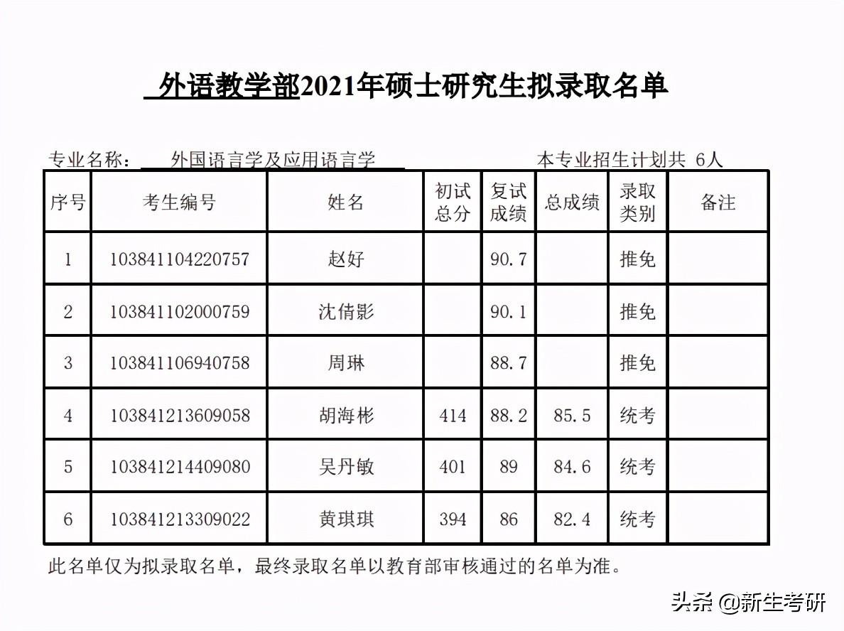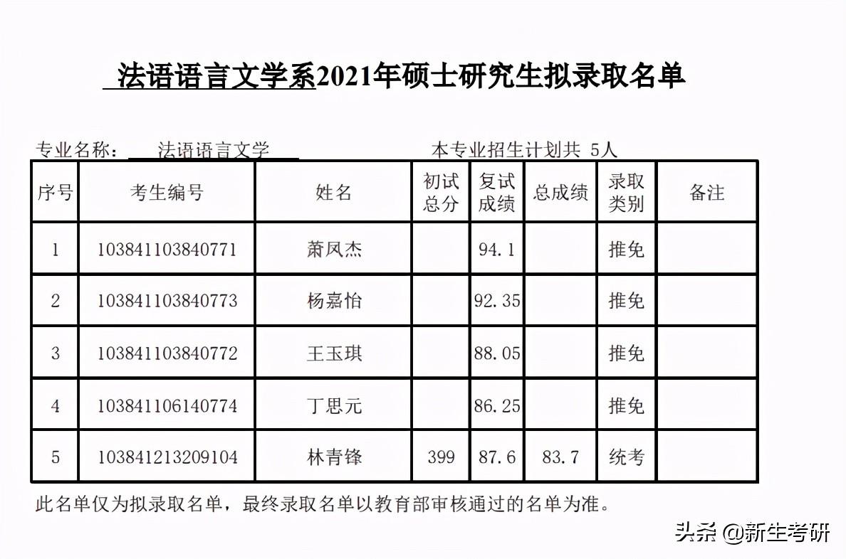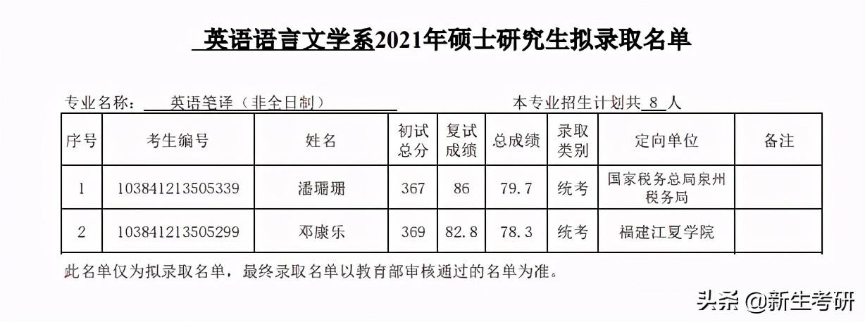 厦门大学外文学院2021年硕士生拟录取名单(公示)