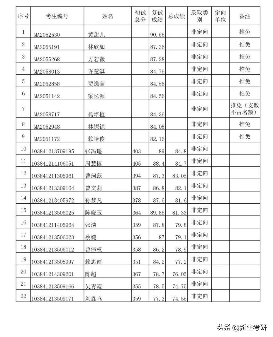 厦门大学2021年各学院拟录取名单(部分)
