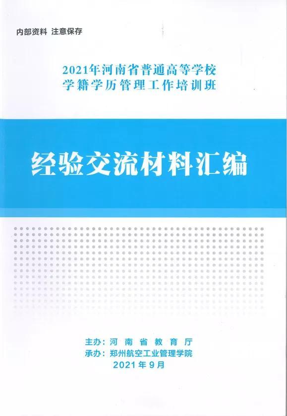 我校规范学籍管理实务流程,解决学籍数据精准“堵点”和学籍学历信息核查“难点”,以大数据、线上资源利用等热点信息技术提升日常学籍管理水平,被河南省教育厅列为2021年河南省普通高校学籍学历管理交流典型,并代表我省入选教育部学籍管理典型工作汇编。