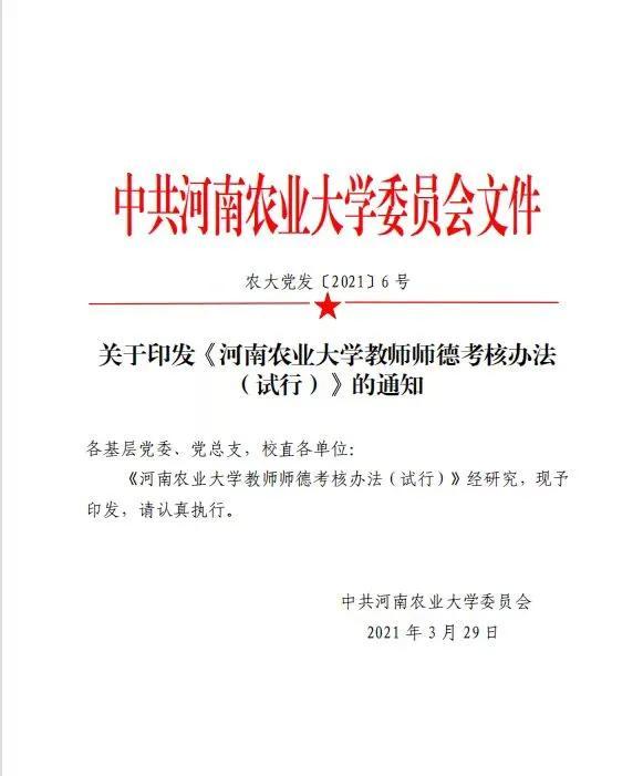学校出台了《河南农业大学教师师德考核办法》和《河南农业大学教师师德失范处理办法》,通过建章立制,不断提升教师的精神境界和职业素养。开展了“礼赞建党百年,矢志为党育人”师德教育主题征文、优秀师德师风案例征集活动,选送的作品在全省评比中获得了一等奖1篇,二等奖1篇,三等奖3篇的好成绩。选树的师德典型—食品科学技术学院雷萌萌教师家庭入选河南省首批教育世家。