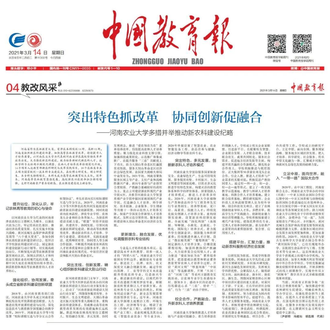 中国教育报刊发副校长尹新明文章《突出特色抓改革 协同创新促融合》