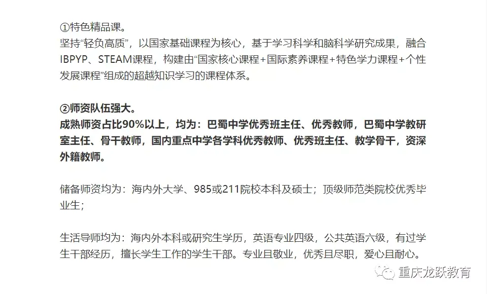 今天的巴蜀中学就介绍到这里了,这四所学校各有各的风格,我们热爱办学时长久的学校,自然也应该拥抱和喜欢年轻的学校。年轻的学校充满朝气,在巴蜀教育理念的带领下,和着孩子一起过成长,一起去收获果实。