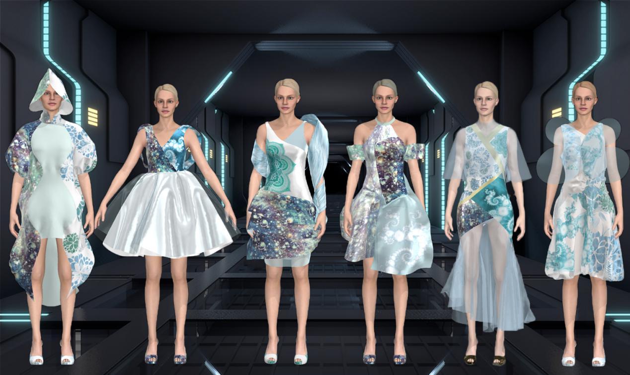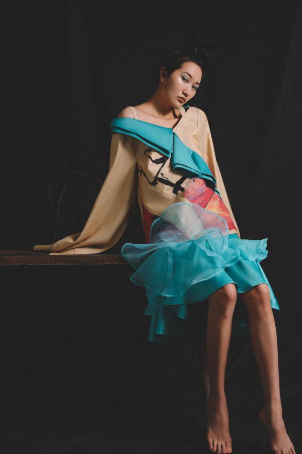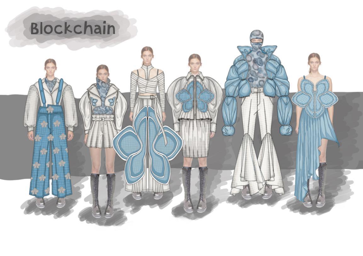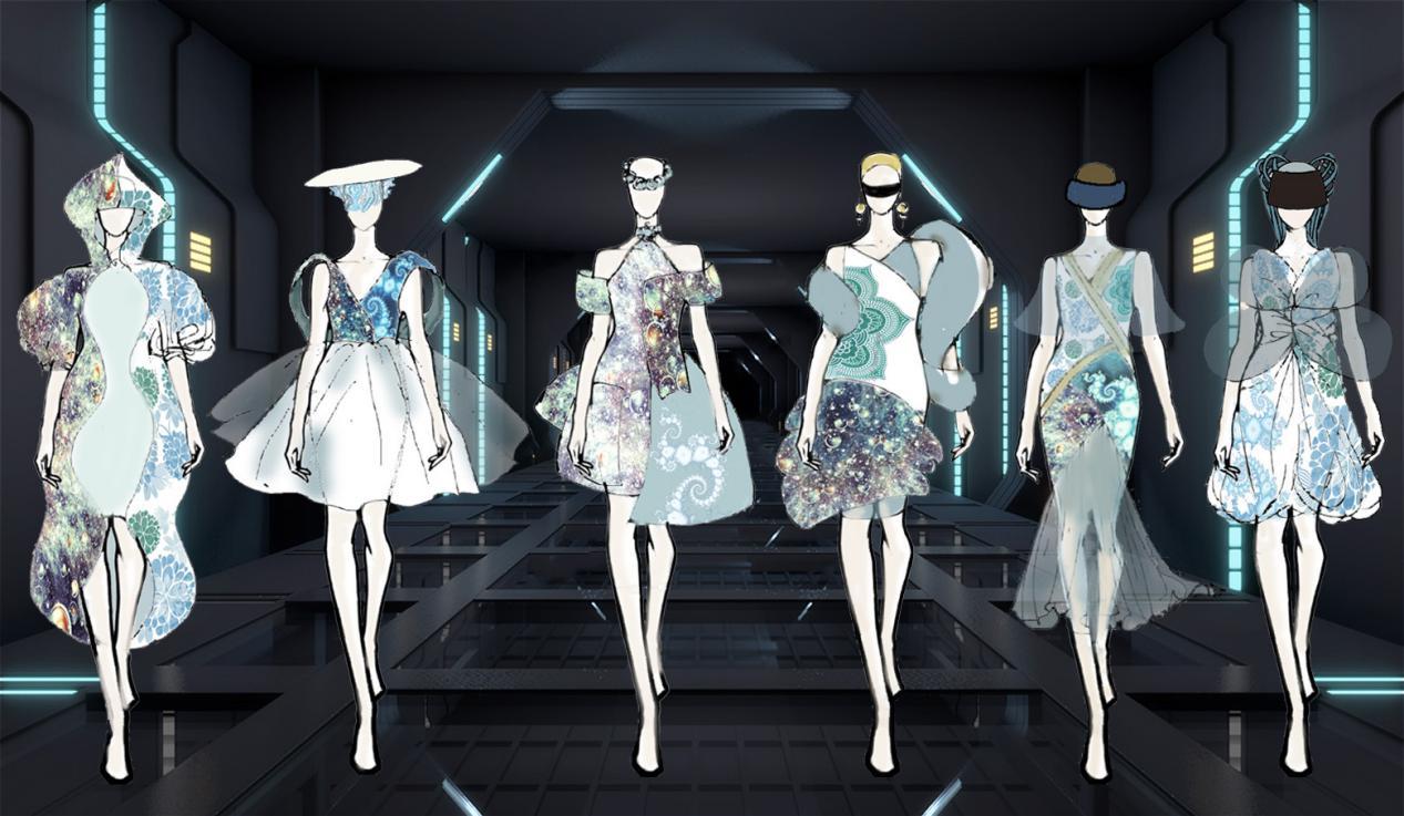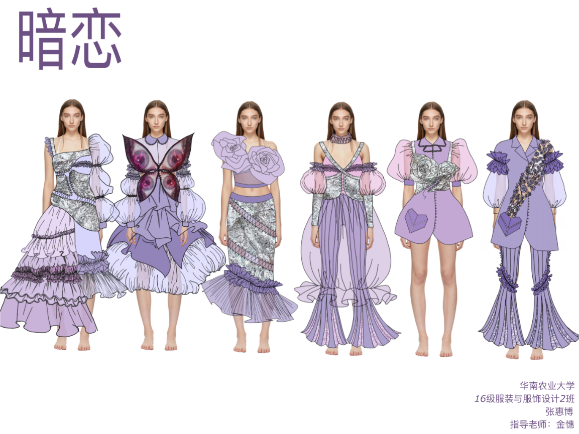 “以探索和应用针对新冠肺炎的安全防护元素,色彩结构和氛围,以营造一种既安全又环保的风格,并将其融入现代服装设计方案中。”