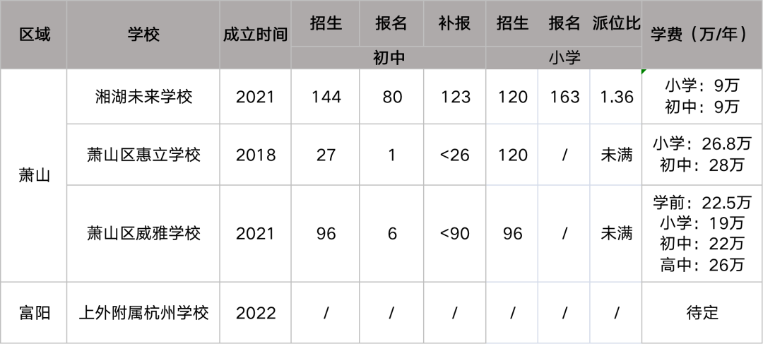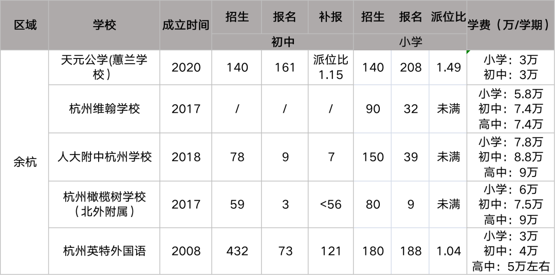 主城区的纯「民办」学校就四所,大部分学校都在余杭区和萧山区。我们收集了部分的民办学校,汇总了去年的招生情况和学费,给大家一个参考。