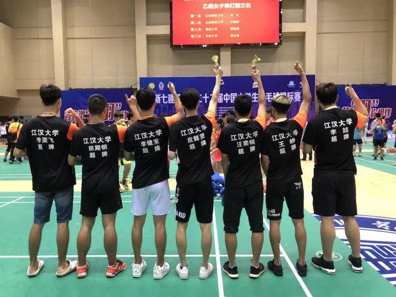 7月20--22日晚开始分别进行甲、乙团体小组循环,男子B组团体小组共四个队,分别是江汉大学、广西师范大学、香港中文大学、中国政法大学,江汉大学羽毛球队均以2:1战胜其余三队,以小组第一的成绩进入第二轮比赛。21日下午进行第二轮比赛,以2;1战胜衡阳师范学院。22日上午以2:1战胜南京财经大学,进入决赛。22日下午以1:2惜败香港理工大学,荣获甲组男团亚军的佳绩。