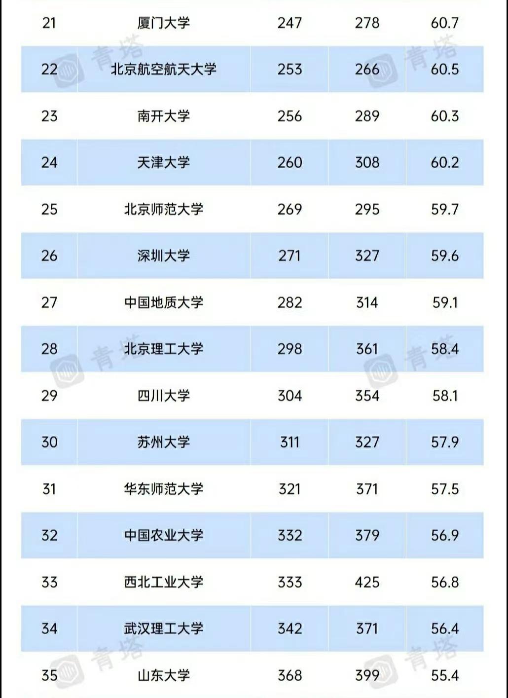 比如排名第12的湖南大学,之前还被教育部降为双一流B类高校,经过这些年的发展,湖南大学的实力得到明显提升,在多个领域都获得创新性成果,而且也符合国外高校排名的标准,所以整体的名次会有很大的上升。