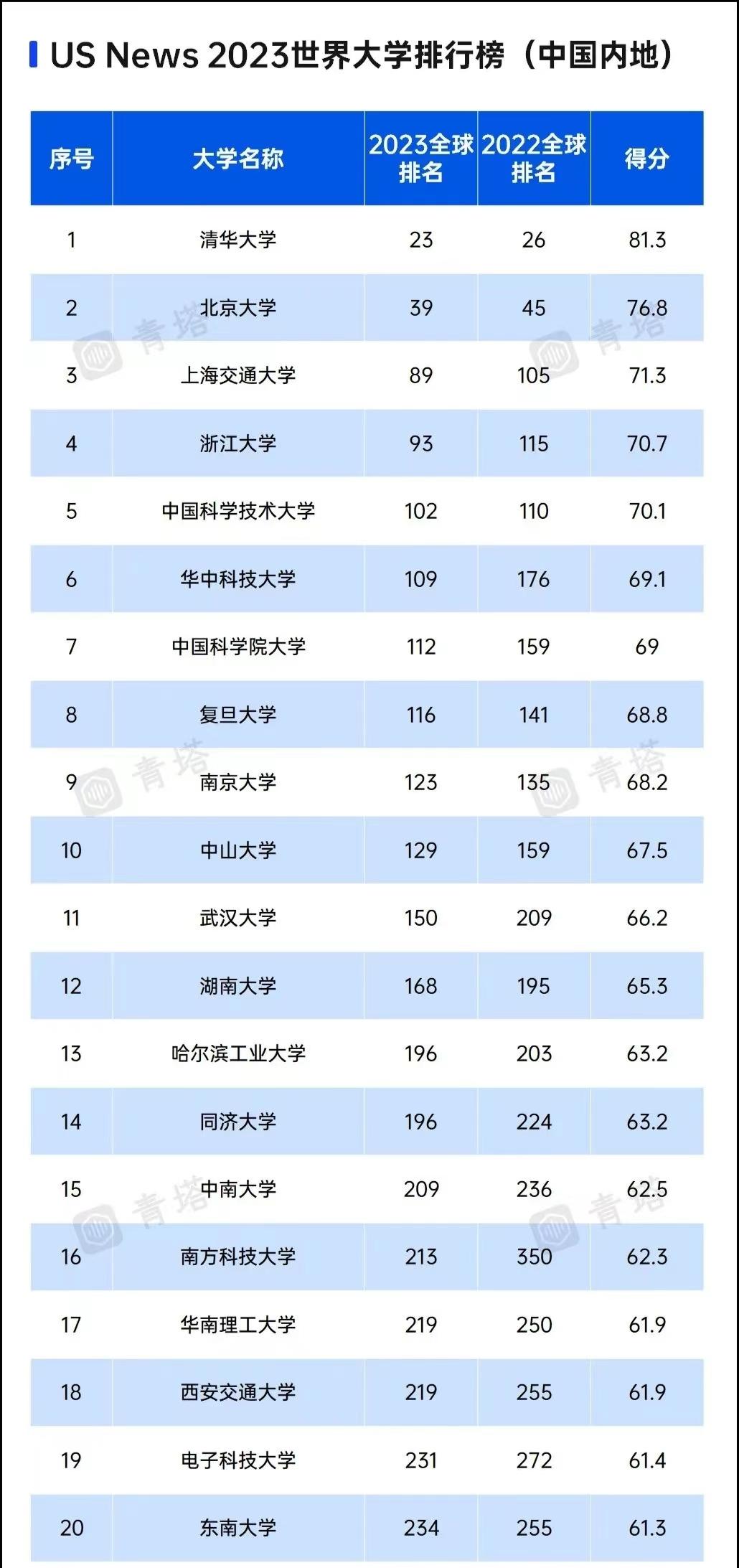 现在大家都更加相信国外高校排名,即使是国家的事业单位或者是国企,对国外的高校排行榜也是更加认可。比如最近美国的US News发布2023世界大学排行榜,就得到很多官方媒体的报道。