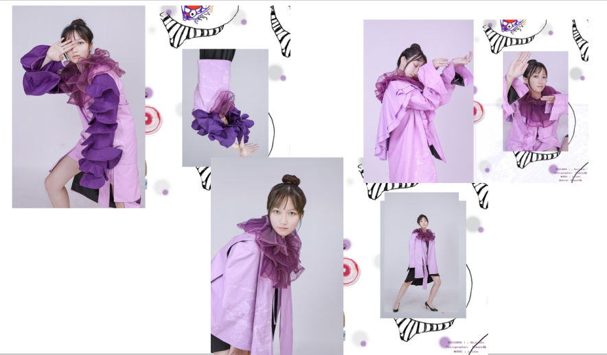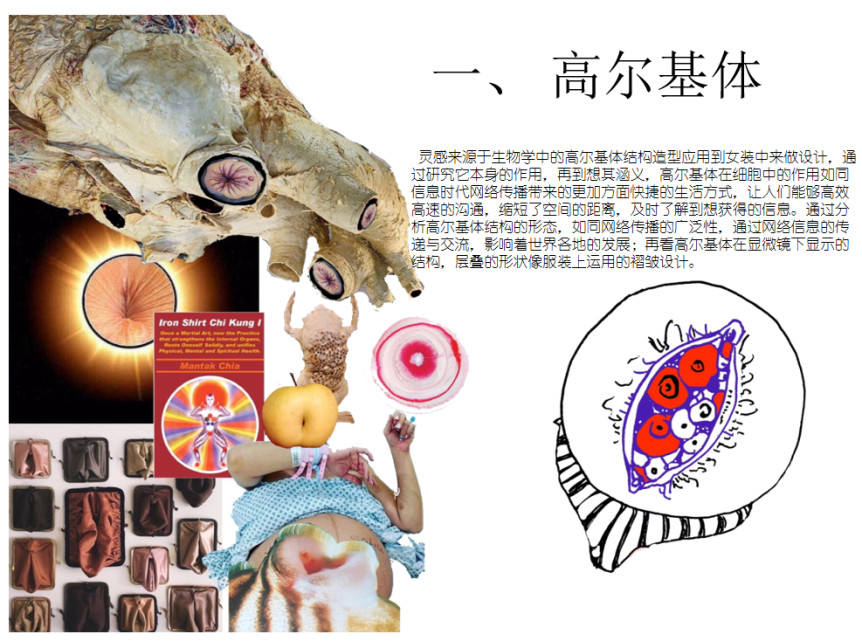 光阴荏苒,大学四年转瞬即逝,校园生活也准备告一段路。毕业设计以高尔基体为主题,意义在于它的作用就如网络传播带给人们来的更加方面快捷的生活方式,更重要的是它显微镜下层叠的形状像服装上运用的褶皱设计。制作期间也遇到了很多的难题和疑惑,但在总能在每一次溃败中都能够自我总结,解决问题。也非常感谢导师陈金怡副教授多次在我不知所措时为我提供帮助,指点迷津,使我受益匪浅。