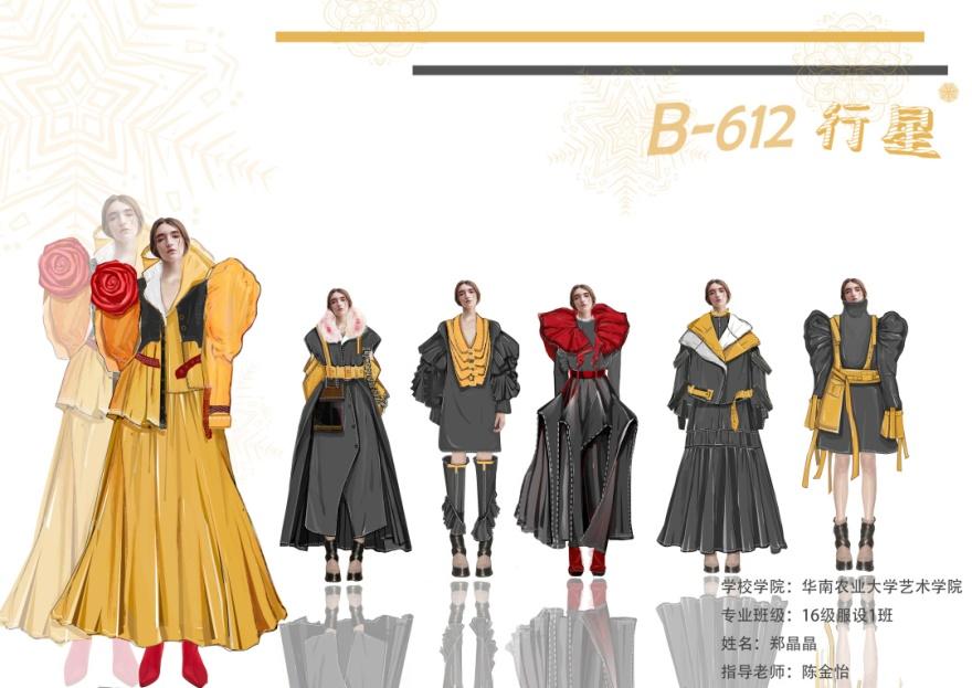 大家好!我是郑晶晶,本次设计主题是《B-612》,灵感来源于The Little Prince,在设计中听从自己内心的声音,表达了自己及想要表达的,可以允许自己身体里住着一个“小王子”:他有一直保持着好奇心,他真实展示内心的真正的情感世界,非常勇敢,知道自己喜欢什么和怎样去做,心存美好”。这是值得我们为之努力,为之奋斗的缘由;希望即将毕业的我们不要被快速发展的节奏所影响,停下来,仔细听听自己心底最真诚的呼唤,不随风逐流,成为自己最想要的模样。