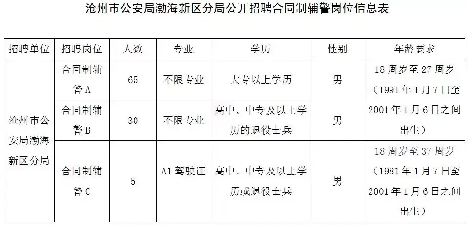 3、限男性,年龄18—24周岁,部队退役人员可放宽至26周岁。(以上年龄条件以二代身份证为准,截至2018年12月31日计算);