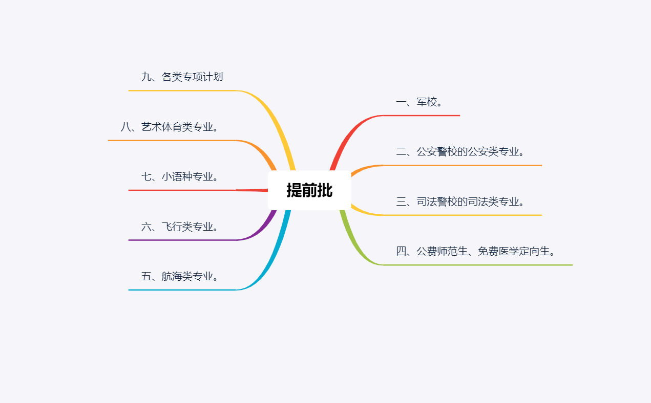 一些知名大学的实验班、“5+3”医学专业。一些被批准在提前批招生的学校。比如北京师范大学、外交学院、上海海关学院、国际关系学院、中国消防救援学院、华东师范大学、东北师范大学等。1.提前批的“特殊性”