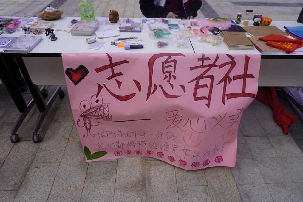 该校志愿者社团在体艺节组织的 “奉献爱心,助飞梦想”爱心义卖活动共筹集4000余元善款,将用于帮扶贫困学生,助力爱心梦想。
