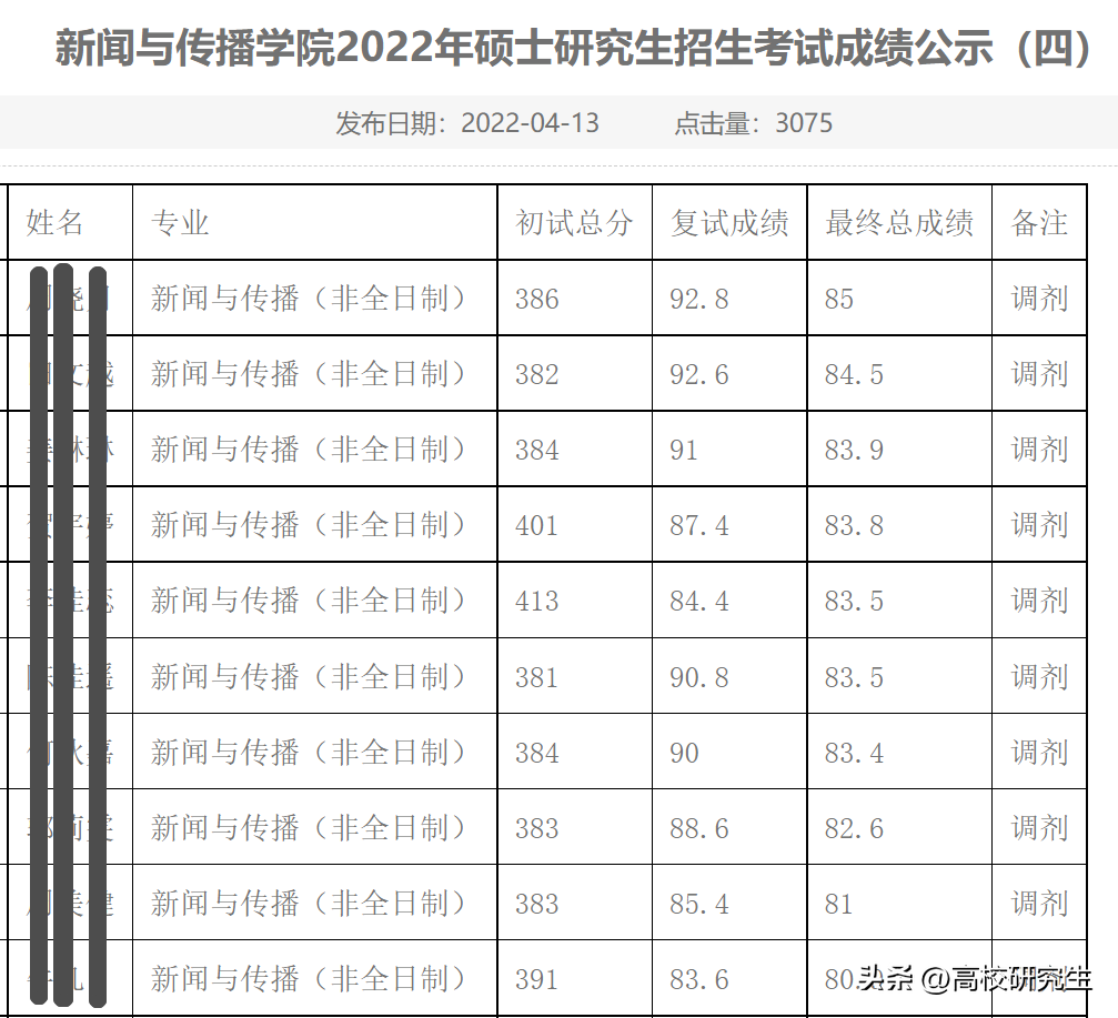 从当时的成绩来看,有21名考生符合条件的考生申请了央民的新传非全日制硕士复试,其中还能看到413分的高分考生,然而央民新传学院仅招收19名非全日制硕士,最后这19名非全日制硕士也全部都来了!