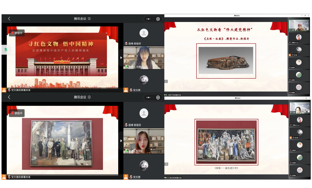 5月18日,中国国家博物馆志愿服务协会组织国博-北语志愿服务队开展了“寻红色文物 悟中国精神”主题线上宣讲活动。14名在前期选拔中脱颖而出的00后北京语言大学学生志愿者成为本次活动的宣讲人。以国家博物馆展出的红色文物为线索,通过线上视频会议的形式,解读中国共产党人的“建党精神”“长征精神”“延安精神”“‘两弹一星’精神”“抗疫精神”等等。