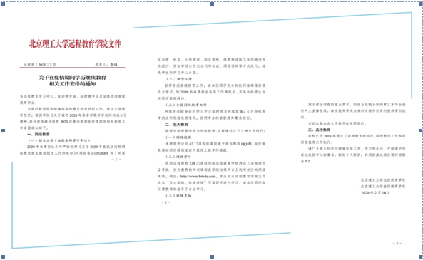北京理工大学继续教育学院高度重视疫情防控期间“停课不停教、不停学”工作,切实落实教育部和北京市相关要求,传达教育部《关于在疫情防控期间做好普通高等学校在线教学组织与管理工作的指导意见》等相关精神。为落实教育部“停课不停学”要求,充分发挥远程平台优势、教育技术学科优势、资源优势,不仅保障我校的远程教育顺利进行,还助力函授、夜大教育有序开展;同时还为我校师生在疫情期间的在线学习提供资源和技术支持。