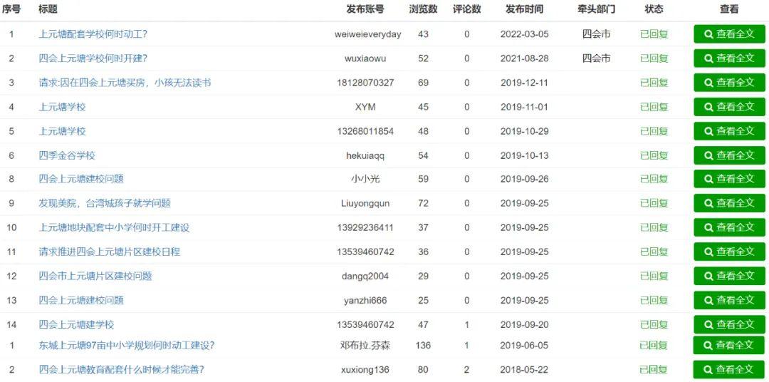 楼市君搜索肇庆问政平台,4年间,关于上元塘学校的网民提问多达15条,基本是关于学校开工时间。