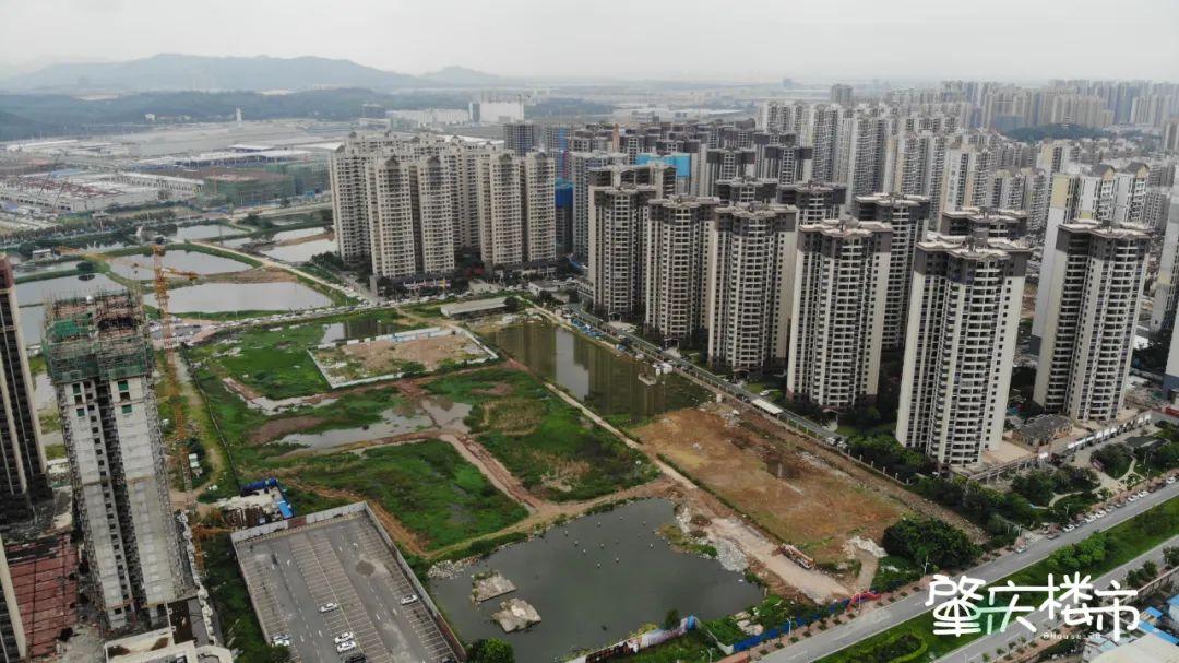 通过航拍可以见到,项目地块未有平整,有大雨过后的积水。