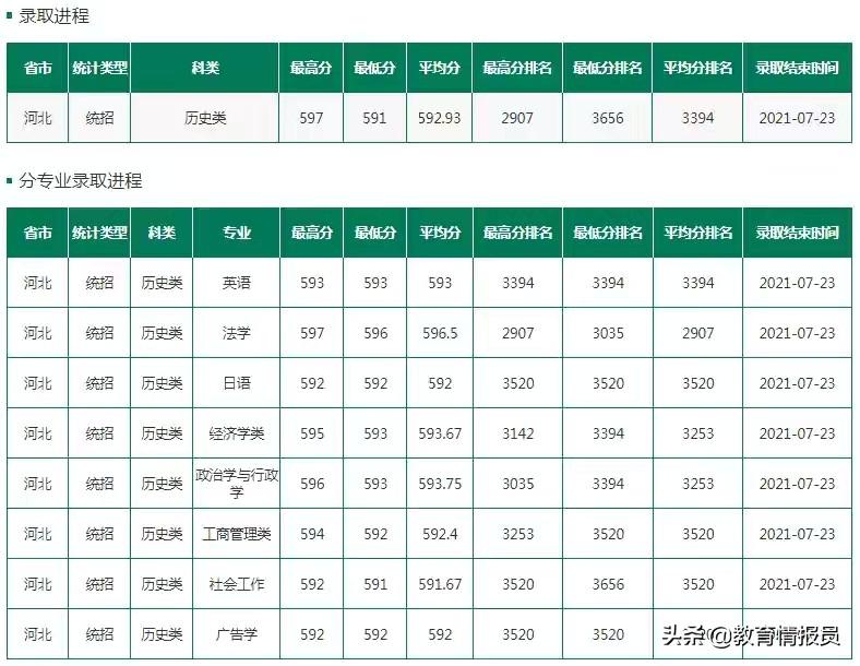 2021河北历史类录取结果分专业分数线,详情请见图片