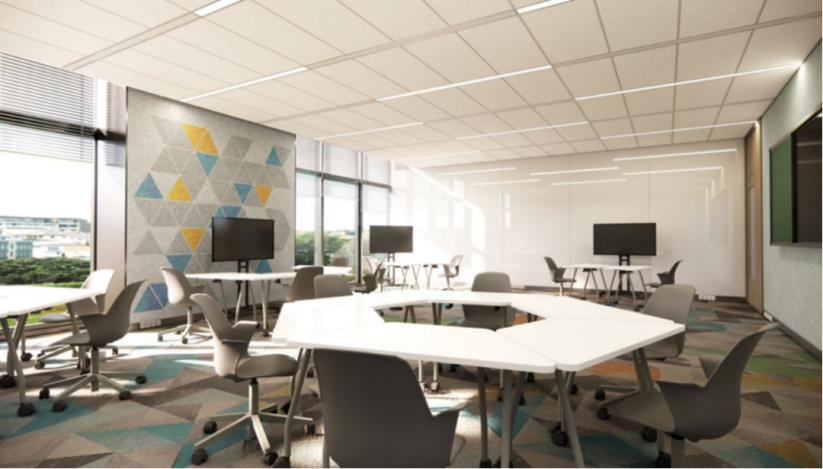 教学楼有贯穿南北的长廊、屋顶花园,开阔的中庭;内设一站式服务场所,集咖啡厅、展览空间和公共交流空间为一体;五百人报告厅和三百人报告厅或将带来更多的学术盛宴,报告厅外还配有轻食区提供茶歇;阶梯教室均为智慧教室,不局限于单向度的知识传受,更注重发挥学生的能动性与创造力,深度激发师生之间的讨论与交流。