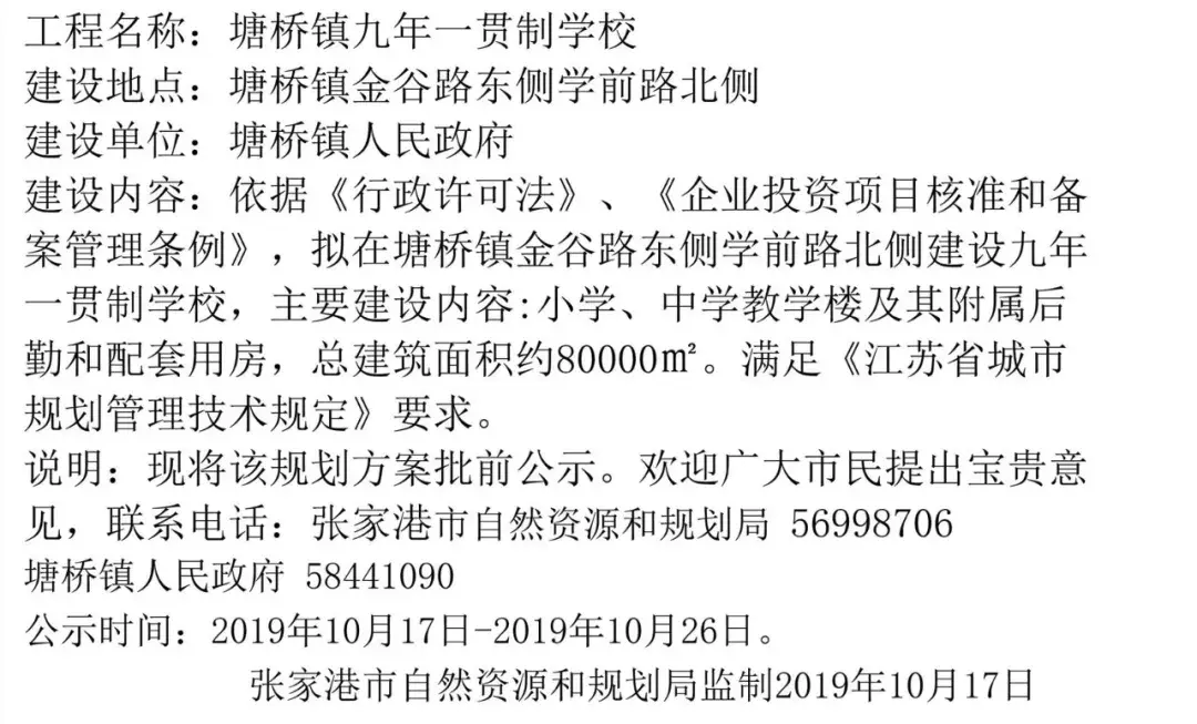 根据有关规定,现对新建张家港市常青藤实验学校东校区项目进行公示,具体公示内容如下: