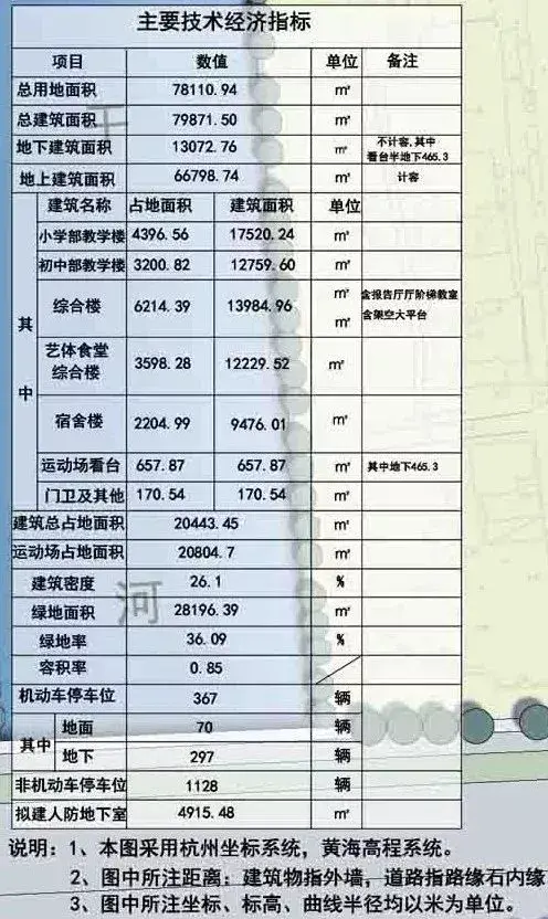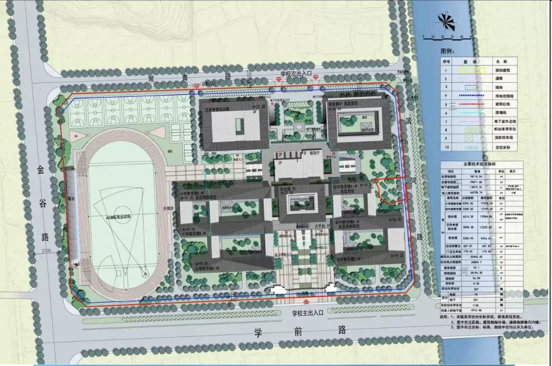 4、建设规模:项目用地面积:78935.61平方米(118.40亩);总建筑面积约:65959.43平方米。其中地上建筑面积约58917.94平方米,地下7041.49平方米;规划建设规模为小学10轨60班,中学10轨30班,共计90班。学生数4200人左右。