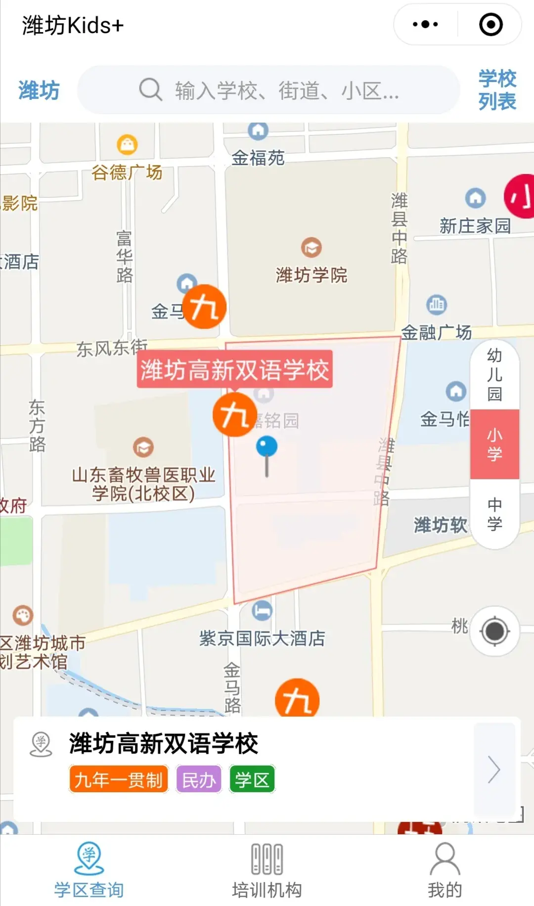 第二,高新双语学校招生片区为:金马路以东,东风街以南,潍县中路以西,健康街以北。