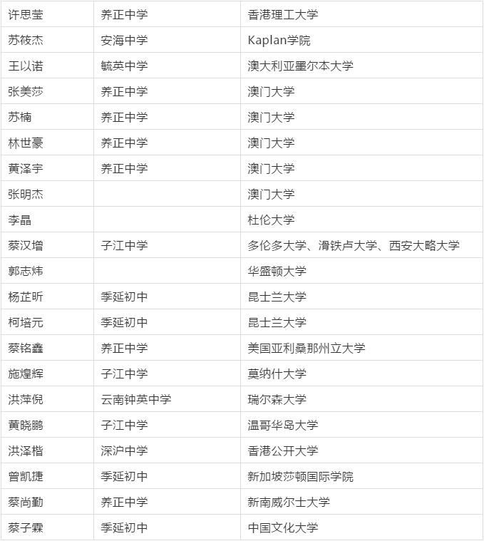 6.此外,本届国际班此前已有18人录取于美国加州大学圣巴巴拉分校、加拿大多伦多大学、澳大利亚墨尔本大学、英国杜伦大学等国外著名高校。