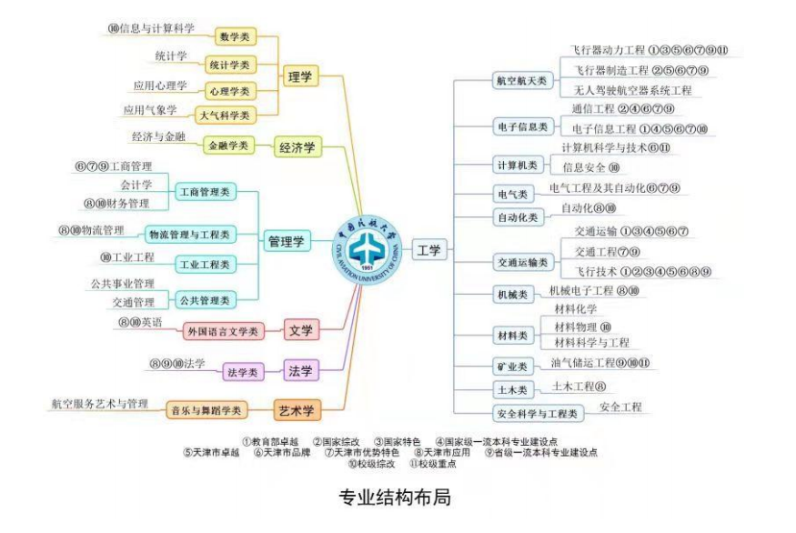 第三,飞行固然是最大的特色,但工学专业依然占据主体优势。校方的说法是,中国民航大学是一所具有工学、管理学、理学、经济学、文学、法学和艺术学等学科门类的多科性大学,是天津市“双一流”建设高校和高水平特色大学建设高校。不过,从专业设置来看,截至2021年底,中国民航大学拥有34个本科专业,覆盖民航主要业务领域,分布在工学、 管理学、理学、经济学、文学、法学和艺术学 7 个学科门类,工学专业明显处于优势地位。