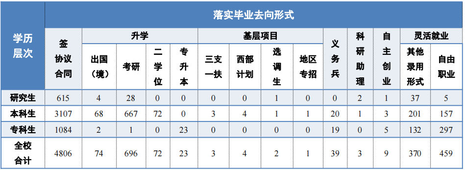2021届本科毕业生分布在 12 个学院 31 个专业,各学院及专业本科毕业生毕业去向落实率如下图,有兴趣的家长可以认真研究一下。